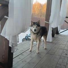 В деревне Курганиха найдена хаски, глаза светлоголубые, почти белые. Добрая, молодая