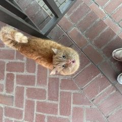 По моему этукошку я уже второй раз ви жу возле дома мичуринский тупик 3 это возле магазина Красное белое если это он то у него как отличительная черта спинка более тёмная чем брюшной Кот общительный можно даже покормить я кормила прячется п... +1