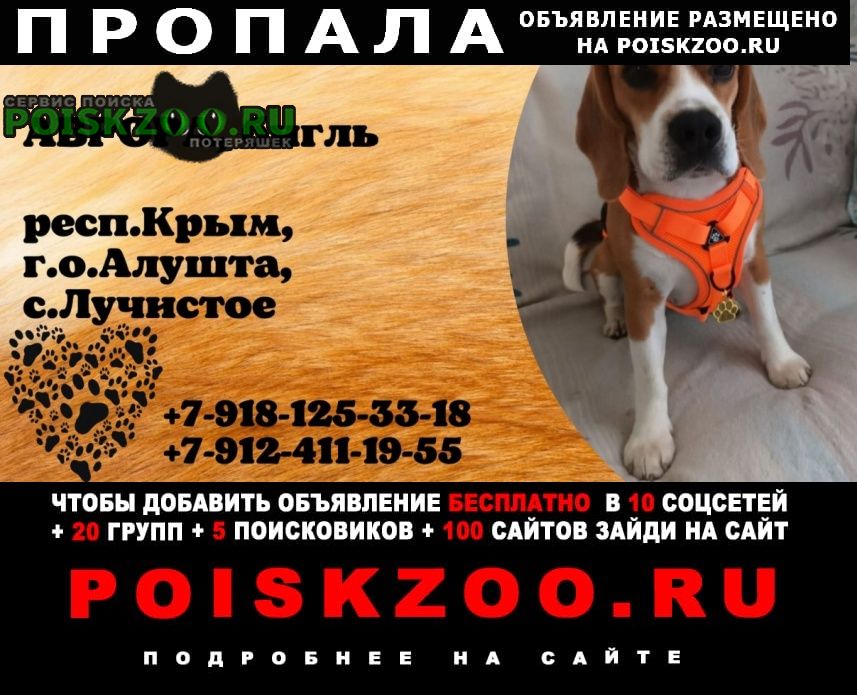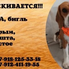Потерялась собака бигль, девочка На шее справа белое пятно, есть клеймо в паху