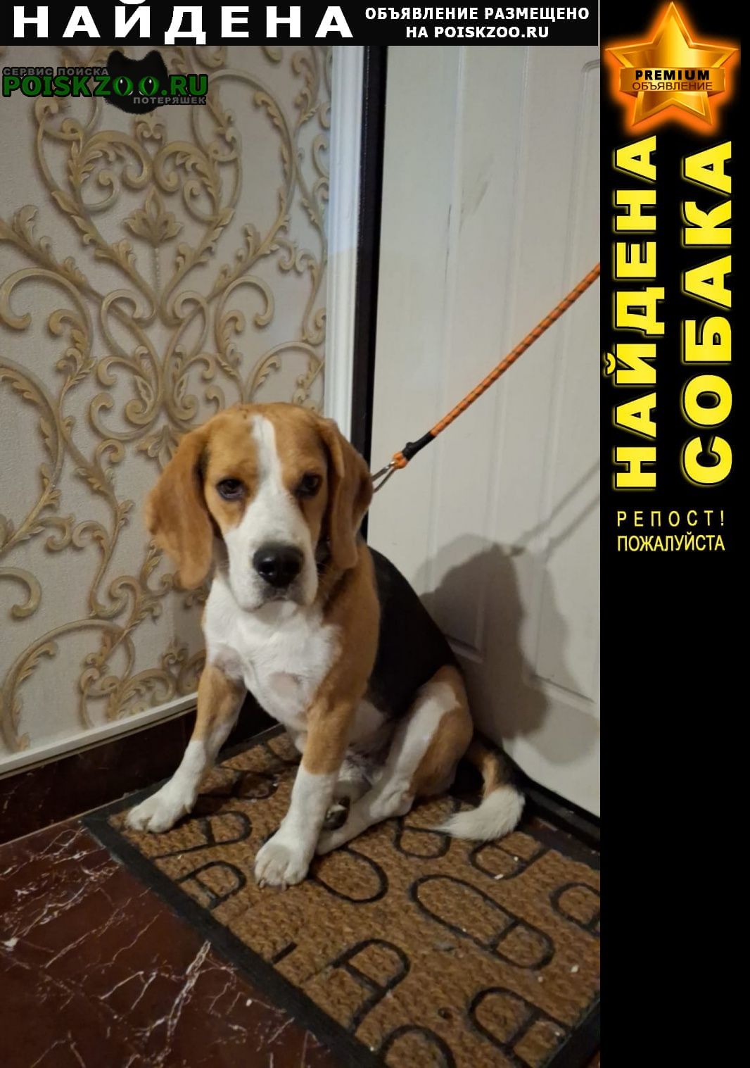 Найдена собака кобель бигль