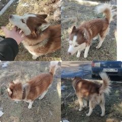 Здравствуйте. Помогите с розыском хозяев собачки породы Хаски с ошейником. Мальчик. Красивый, пушистый (в реальности очень пушистый, на фото вышел по-хуже), не худой, чистенький. Бело-рыжекоричневого цвета. Бегал в районе остановки Маяк, напротив помещения Маяк, на стороне, расположенной по направлению от жд вокзала в сторону центра города. Смотрит на каждого человека, видно, что ищет своих хозяев. Ласковый, подходит к людям, даётся гладить. Возможно кто-то потерял. Распространите, пожалуйста информацию. Сфотографировали, прилагаем фотографии