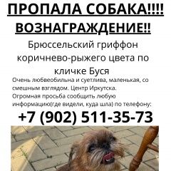 Пропал брюссельский гриффон в центре Иркутска. Район музыкального театра, ул. Коммунаров 14. Коричневая с рыжеватым оттенком. Маленькая, с большими глазами. Смешная и навязчивая. Тел:.. Звонить по любой информации(где..
