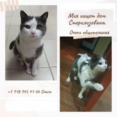 Девочка ласковая, контактная. Шерсть мягкая. Видно, что домашняя. Потерялась или выкинули. Сейчас приютили ненадолго. В квартире ведёт себя хорошо. Туалет освоила. На улицу совсем не просится, нравится жить в квартире. Отличная компаньонка: внимателтная, ласковая, мурчателтная. Стерилизована, обработана. Ищем любящие, ответственные руки.
