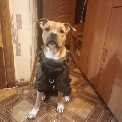 Пропал пес, Стаффорд, на нем была шлейка с нашивками его клички БАКС есть адресник, но это хозяин не справился с хорошими руками, и мы забираем его обратно