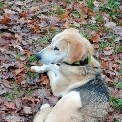 Найдена собака в лесу, недалеко от Клязьмы. Видимо давно пропала, исхудавшая. Кобель