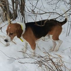 Пропала собака, порода эстонская гончая, бело-рыже-черный, вислоухий, на голове выше правого глаза шрам, одет жёлтый светоотражающий ошейник. Пропал 11 числа после 12 между лудиной горой и беркино. Возможно появление..