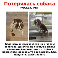 ПОТЕРЯЛАСЬ СОБАКА МОСКВА и МО 10. 12 около 18 часов убежала из машины в Лианозово. Последний раз видели 10. 12 в 18:30, бегущую по Дмитровскому шоссе в сторону области Пожалуйста посматривайте на выгуле не появилось ли..