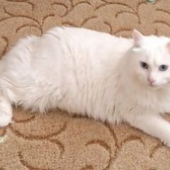 Белый пушистый кот с голубыми глазами. Зовут Бельчик.