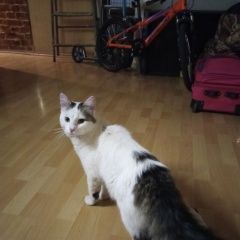 Племянница нашла кошку, или кота. Она не разбирается. Оно бегало и цеплялось к людям с целью погладиться на пересечении Можайской и Клинского. Ласковое. Немного пугливое. Яркая примета– очень пушистый хвост. Когти короткие, возможно подстрижены, знает про лоток.