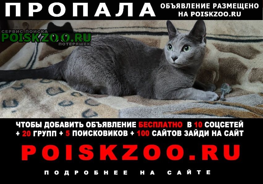 Потерялась кошка зовут Астра серого цвета порода русская голубая