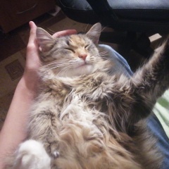 Я видела вчера похожего котейку на 2 переулке, прохожие его кормили. Плакал сидел, с задними лапками непорядок. +1