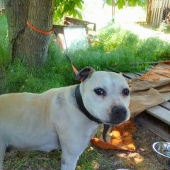 В 2017 году был подобран стаффордширский терьер. Девочка. Возраст: лет 7. Окрас: палевый. Умная, контактная и спокойная. Дисциплинированная. Знает команды. С людьми ладит. К детям относится спокойно. К поводку приучена.