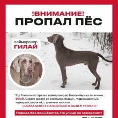 Веймаранер из Новосибирска по кличке Гилай ПРОПАЛ 9 октября 2025 недалеко от г. Томск, в районе пос. Суетиловка. В данный момент место нахождение неизвестно Окрас серо-голубой, поджарый, глаза светлые, хвост не купирован, без подшерстка. Гилай чипирован. Возможно его кто-то подобрал. Вернувшему вознаграждение..р Собака может быть и в Вашем регионе Просим не оставаться равнодушными, и связаться с хозяином, если есть какая-то информация о местонахождении пса: .. Александр.. пропаласобака