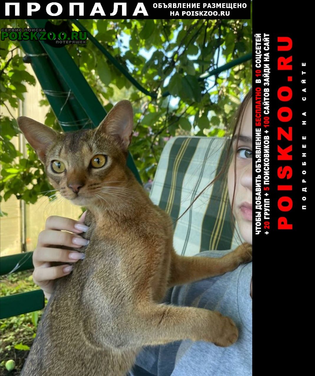 ВНИМАНИЕ Пропал кот (Абессинец) коричневый окрас К чужим не подходит, может шипеть Если видели просьба позвонить:.. Станислав Тульская область, Заокский район, сельское поселение Малаховское, СНТ Скнига, пропал 12. 10. 25, могли увезти куда угодно помогите вернуть котика домой, он член семьи
