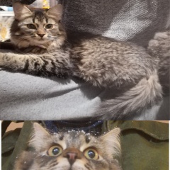 Возраст 1 год. Беспородная. Окрас коричнево серый, с белым подбородком. Основные приметы:всегда широко раскрытые зрачки, на животе меньше шерсти. Пропала 19. 07. 24 недалеко от Пасильево. Нашедшему просьба сообщить по тел.
